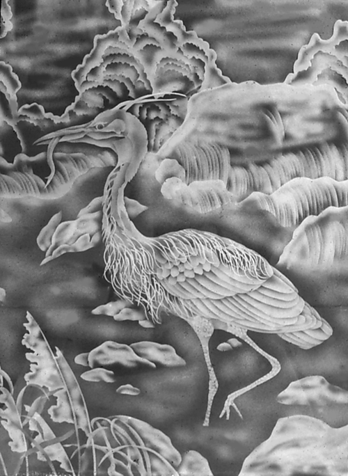 This sandblasted Blue Heron I made for a window in my old studio. The heron illustration came from an Irish artist.